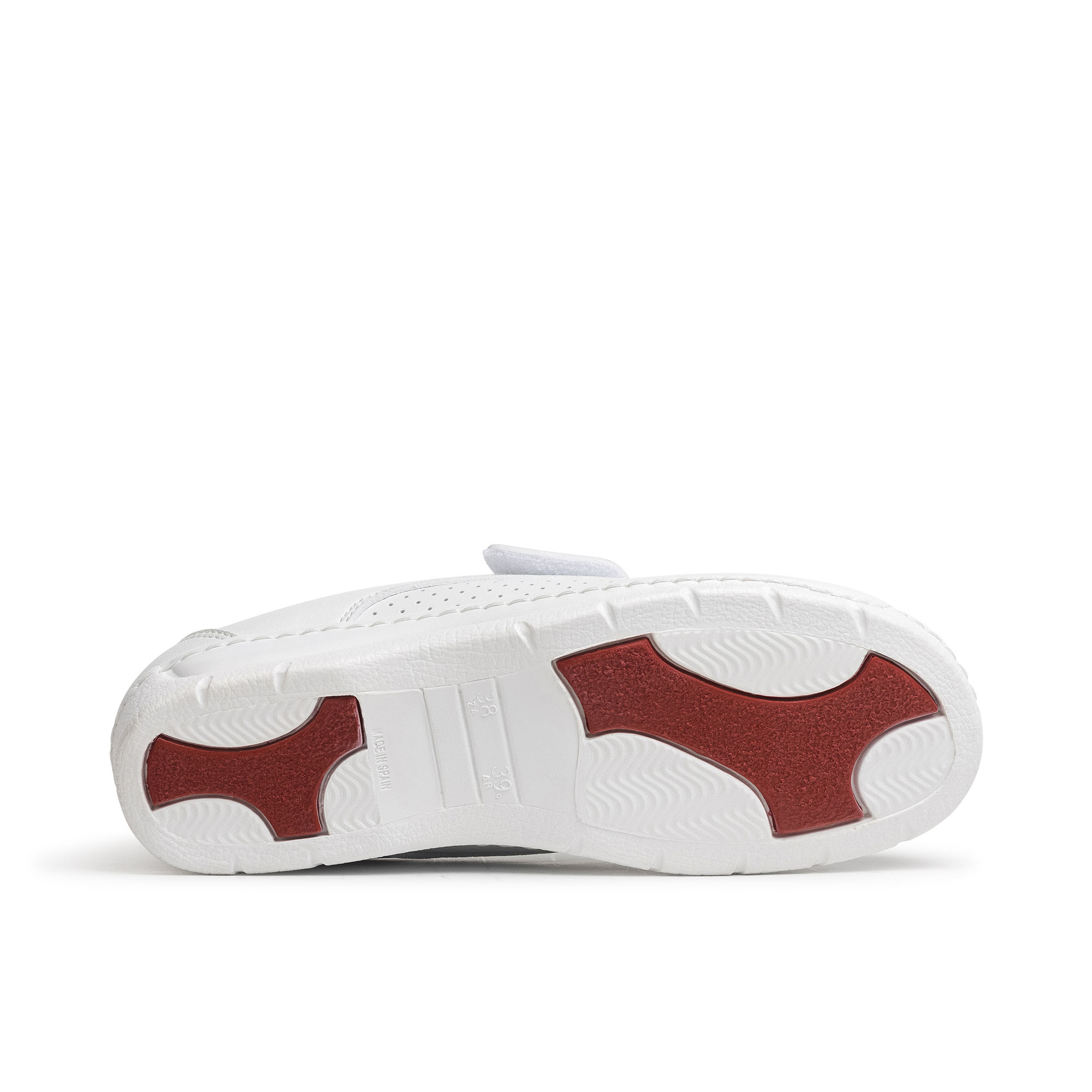 Zapato con cierre de velcro. Corte de microfibra técnica D’COVER OEKO-TEX® con forro transpirable D’DRY®. Horma recta de puntera redondeada. Contrafuerte de dureza suficiente para sujetar el calcáneo. Plantilla acolchada de tejido sobre espuma de poliuretano con tratamiento antibacterias y carbón activado. Suela de poliuretano en forma de cuña, antideslizante de doble densidad, bicomponente de poliuretano y TPU combinados para aumentar el coeficiente de eficacia antideslizante del zapato. Fabricado mediante montado y cosido de seguridad para reforzar la unión de la suela al corte del zapato.