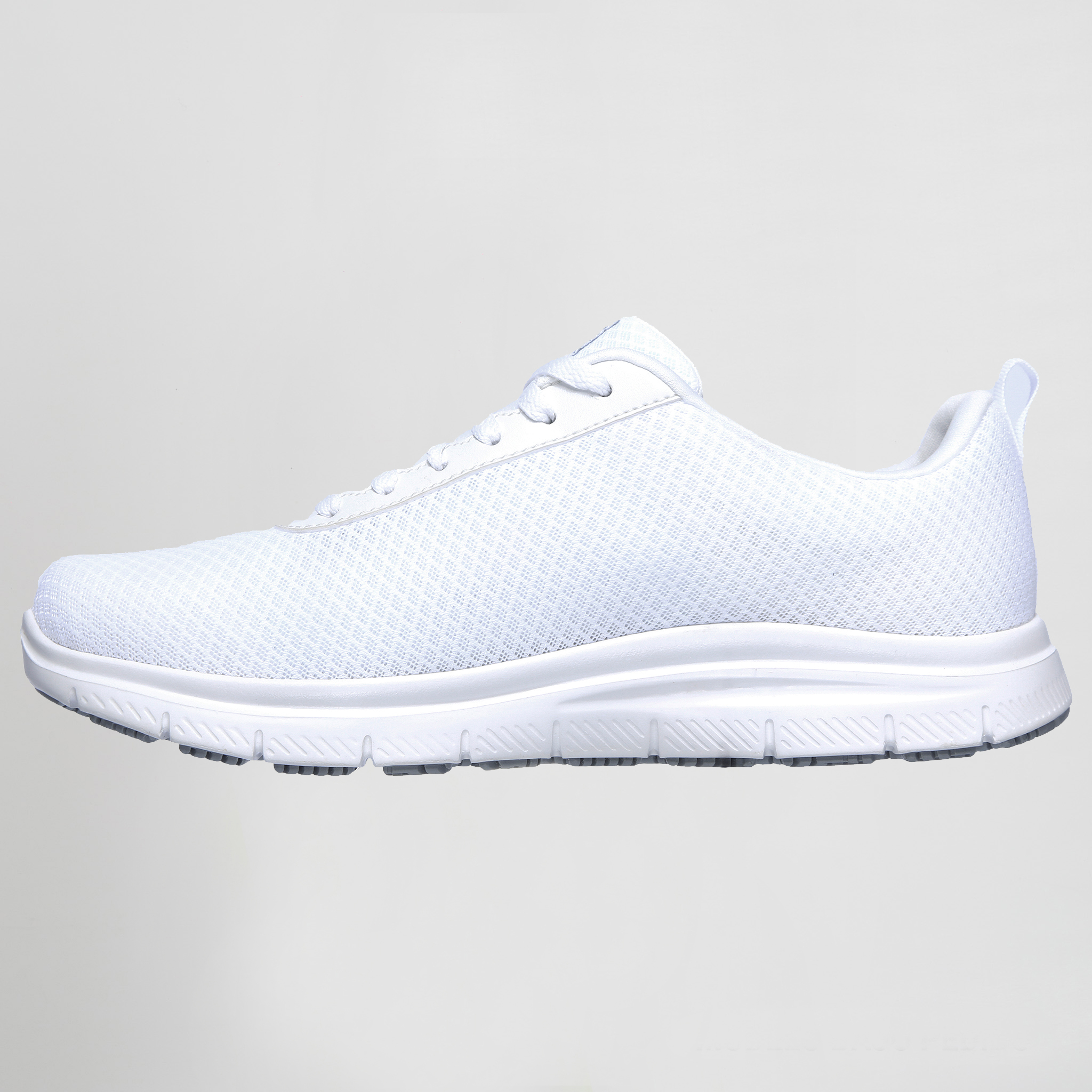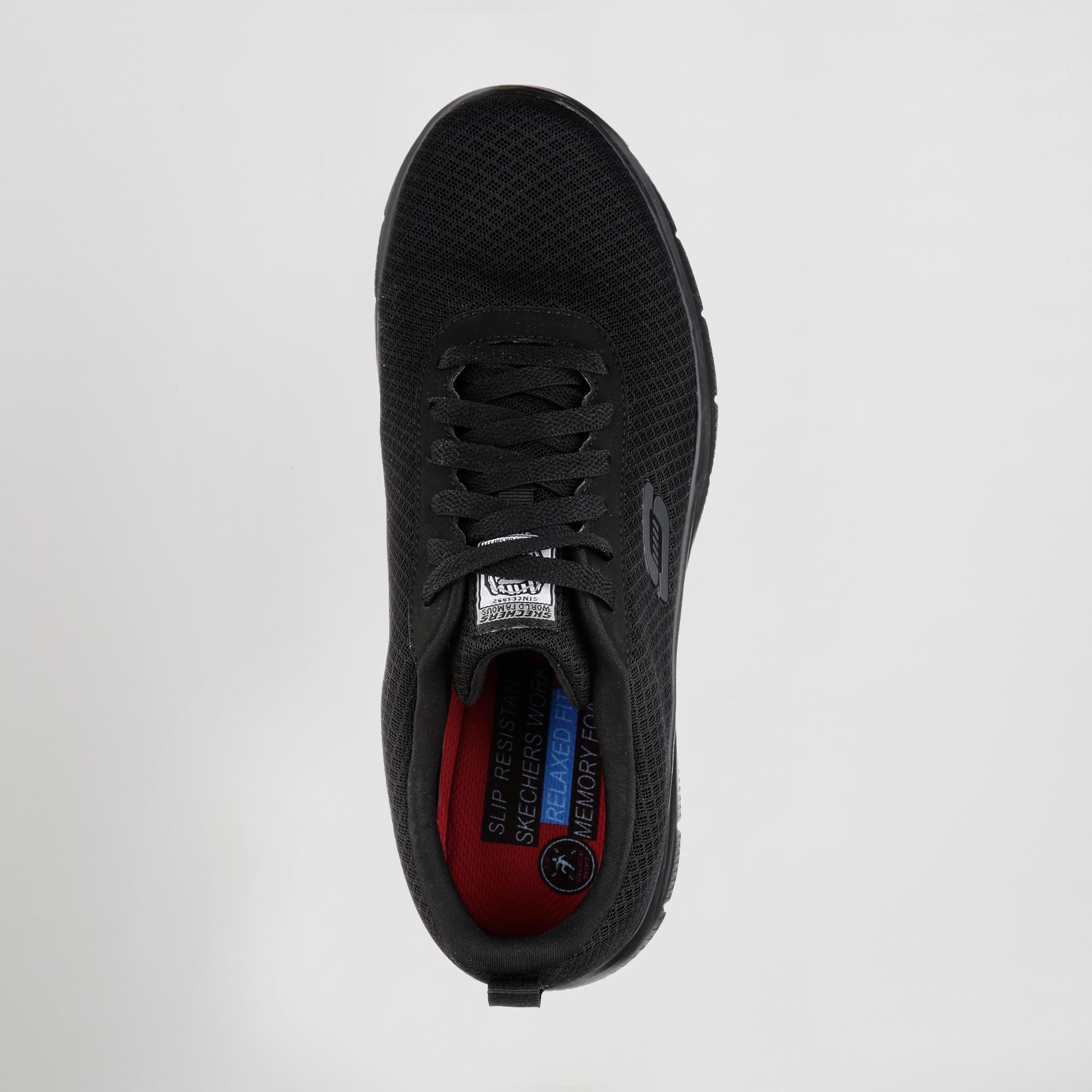 Parte superior de tejido sintético y malla en una zapatilla deportiva casual con cordones, detalles de costuras, suela antideslizante perfecta para el trabajo y plantilla SKECHERS Memory Foam.