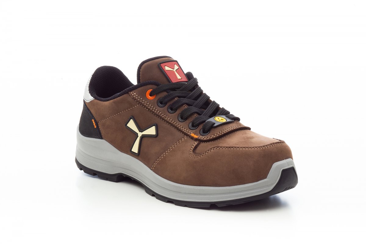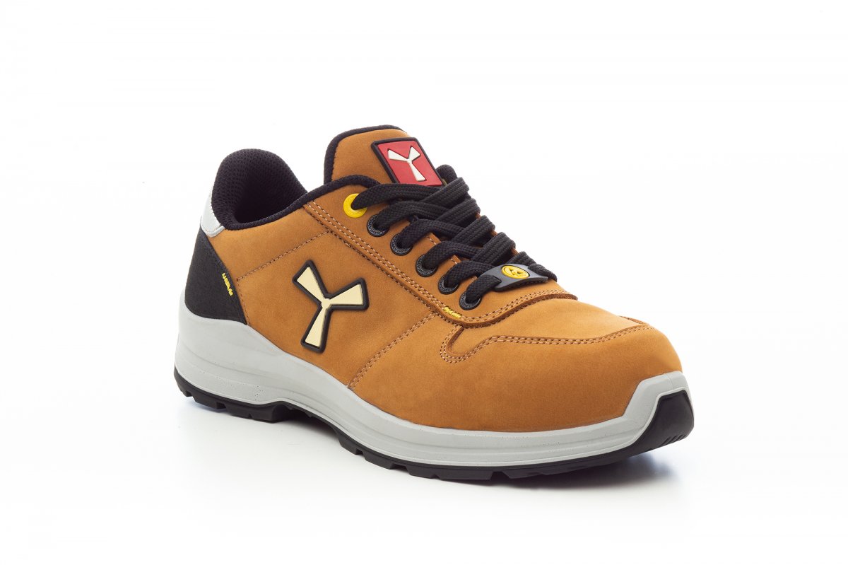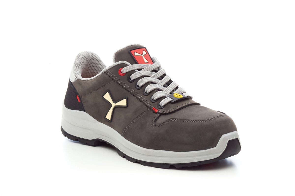 Zapato de seguridad antiestático bajo de mujer, pala de piel repelente al agua y transpirable, forro interior (en toda la superficie interna) transpirable y resistente a la abrasión, 6+6 ojales sin metal, protector de tacón en grano técnico con inserción reflectante, puntera de aluminio moldeado a presión, plantilla extraíble Ortholite X40 016, plantilla de lámina textil certificada antiperforación, cambrillón antitorsión, base de la puntera con forma de herradura, entresuela de poliuretano ultraligero, amortiguador MASTER BALANCE en PU poliéter de alta tenacidad y densidad equilibrada, suela XTRAIL GRIP en TPU con protector de tacón y de punta.