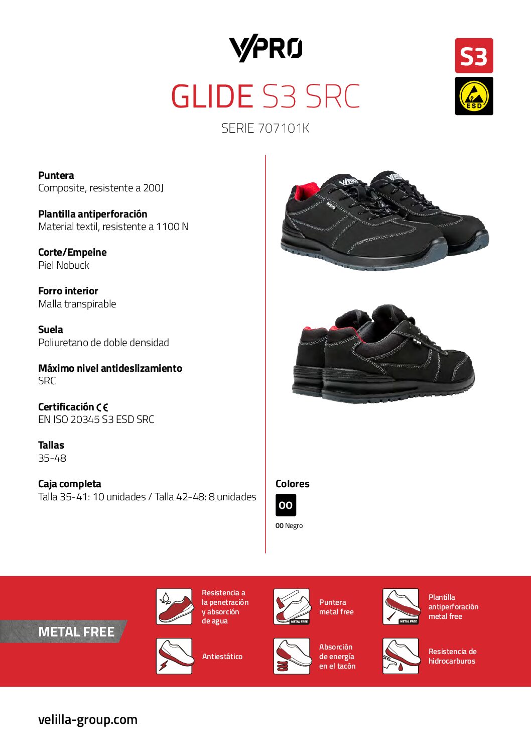 Características técnicas de zapato de seguridad GLIDE S3 SRC ESD :